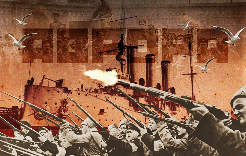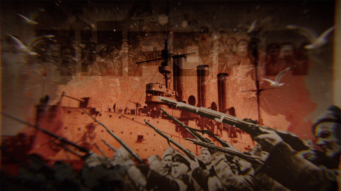 В основе визуальной концепции заставки — история последнего года жизни Николая II. Отъезд императора из Петрограда накануне волнений, эскалация противостояния и центральный образ: Николай II, объятый пламенем — метафора отречения от престола. Ленин, сцены агитации, а в финальном кадре — «Аврора» и солдаты, ставшие символами революции.