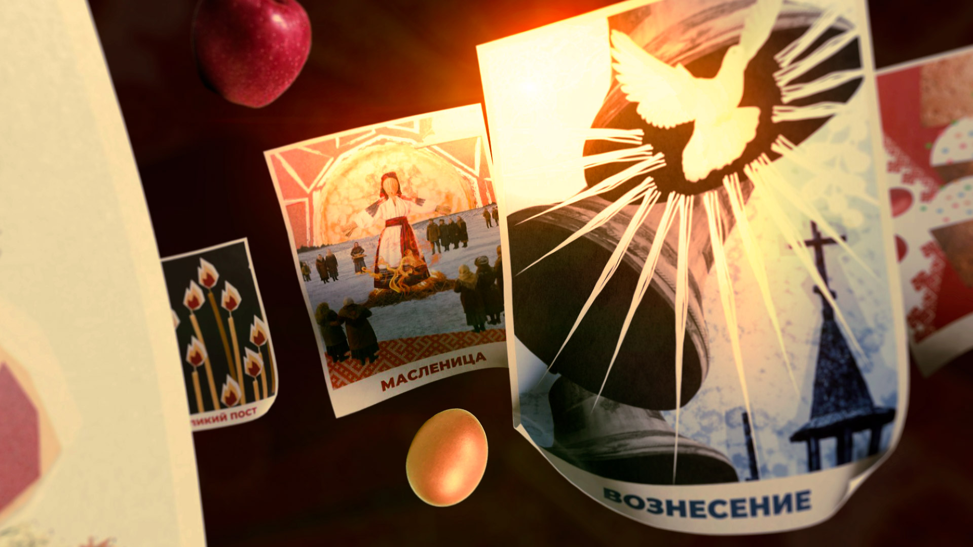 «Хочется праздника» — это телепередача, которая погружает зрителей в атмосферу русских праздников, уделяя особое внимание православным традициям. К нам обратились ██████, чтобы мы разработали начальную заставку, которая не только передаст настроение телепередачи, но и органично впишется в уже существующий стиль сопровождающей графики. Проект, к сожалению, не состоялся, но мы не могли не поделиться получившимся результатом, полным сюрреализма и веселья!