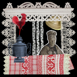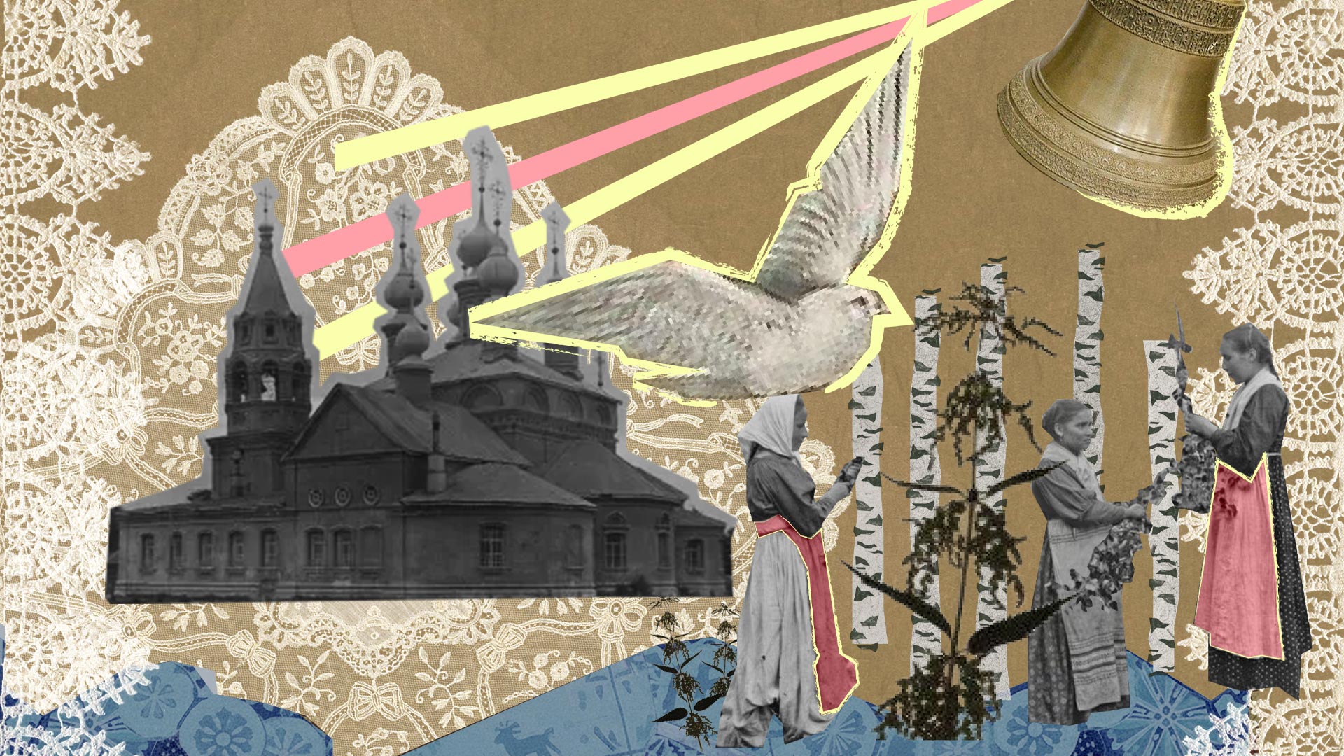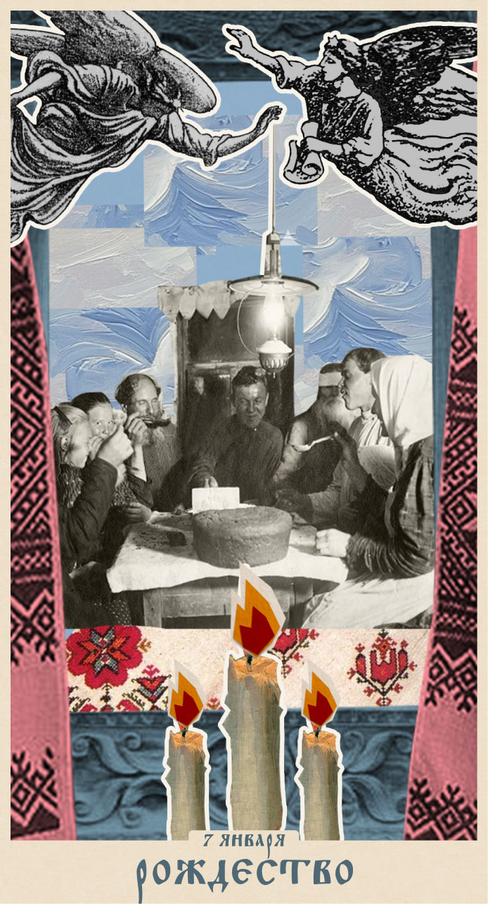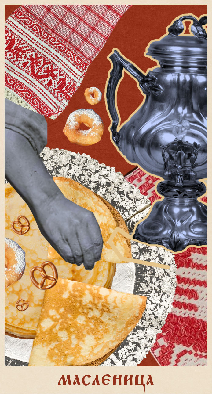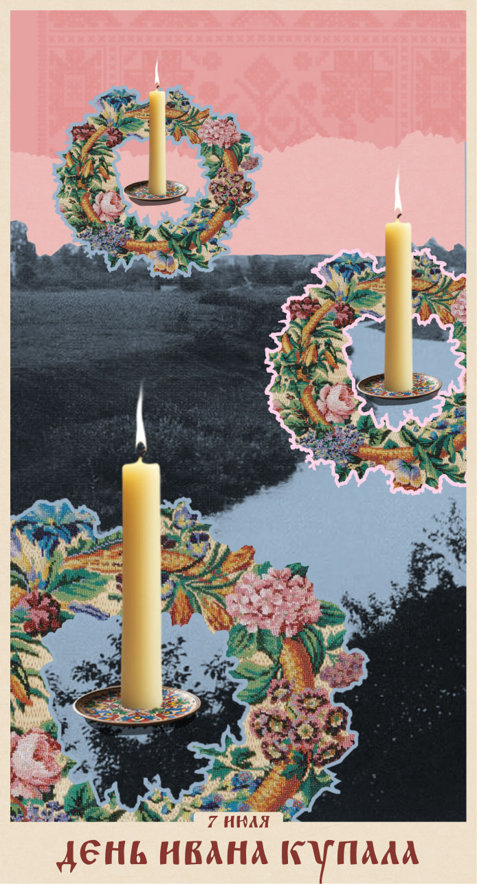 После анализа и обсуждений мы приступили ко второй итерации уже с более чёткими ограничениями. Существующий стиль графики телепередачи был эклектичен и построен на контрастах: архивные фотографии соседствовали с векторной графикой, композиции намеренно ломали перспективу, а яркие цвета добавляли современного «звучания». Особое внимание уделялось изображению русской деревни XIX века — с шероховатостями, несовершенствами и даже плохим качеством снимков, что подчеркивало её аутентичность. Мы отказались от стерильных и идеальных изображений, которые могли бы создать нейросети, и с энтузиазмом погрузились в процесс, экспериментируя с формами, композицией и цветами.