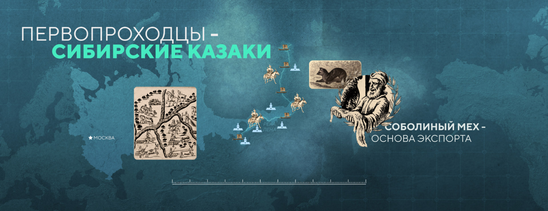 С 1580-х годов, начиная с походов Ермака, русские землепроходцы начали экспансию на восток. В XVII-XVIII веках были предприняты экспедиции к Тихому океану, в том числе исследования Василия Пояркова, Ерофея Хабарова и Витуса Беринга. Это открыло новые территории, включая Алеутские острова и Курилы, и положило начало русской колонизации региона.